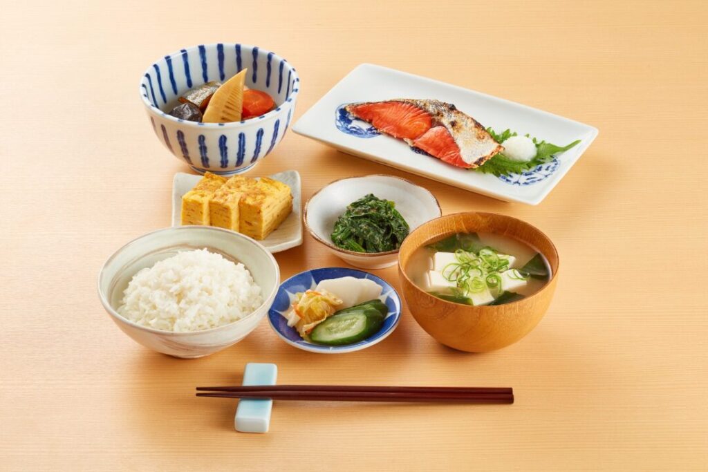 • 朝:卵+納豆+味噌汁+ごはん